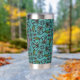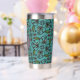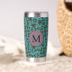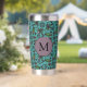 Cute Teal Floral Pattern Monogram Insulated Tumbler