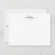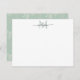 Cute Teal Green Floral Leaves Monogram Script Name Note Card