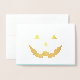 Cute teal jack o lantern carved pumpkin face spooky scary funny modern Halloween foil greeting card /Trick or Treat invitation.