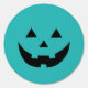 Cute teal and black jack o lantern carved pumpkin face spooky scary funny Halloween round Sign. Halloween decorations.