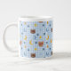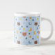 Cute Teddy Bear and Moon Pattern on Blue Gingham Giant Coffee Mug