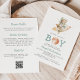 Cute Teddy Bear Astronaut QR Code Boy Baby Shower Invitation