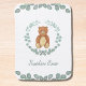 This cute baby blanket is decorated with a watercolor teddy bear and eucalyptus greenery.