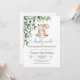 Celebrate the upcoming arrival of Baby Elizabeth with this adorable teddy bear baby shower invitation. Featuring a whimsical bear holding a balloon surrounded by soft greenery, this charming design sets the perfect tone for a joyful gathering. The playful "we can bearly wait- phrase adds a sweet touch, while the elegant layout ensures your event details shine. Ideal for parents-to-be, this invitation blends cute illustration with modern style, making it a memorable keepsake for guests. Perfect for baby showers, gender-neutral themes, and nature-inspired celebrations.