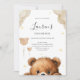Designed in soft neutral beige tones with a cute bear illustration, this invitation is perfect for baby boys, baby girls, or gender-neutral baby showers.