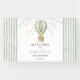Welcome your guests in style with our adorable ‘Adventure Awaits’ baby boy shower welcome banner printed on vinyl material! Featuring a charming hot air balloon with a cute teddy bear adorned with a bow in sage green hues, this whimsical design adds a sweet and preppy touch to your celebration.