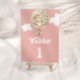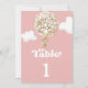 Step into a world of whimsy and anticipation with our Cute Teddy Bear Balloons Pink Table Number, a heart warming celebration where dreams take flight amidst a backdrop of soft pastel hues and retro charm. This enchanting design features a darling beige bear soaring in a basket, lifted by a magnificent air balloon crafted from an array of small beige and gold balls. Each detail is lovingly crafted, capturing the essence of joy and excitement as the little one's arrival draws near. The soft pink background envelops the scene with a gentle warmth, while the retro font adds a touch of nostalgic elegance to the overall composition. Matching items available.