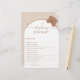 Step into a world of minimalist charm with our Minimalist Cute Teddy Bear Bearly Wait Wishes for Baby Game, where simplicity meets sweetness in a celebration of new beginnings. This enchanting design features an adorable bear figure peeking out from behind a stylish arch, evoking a sense of playful curiosity and anticipation. This item capturing the essence of joy and excitement as loved ones gather to welcome the little one. Surrounding the frame and the adorable peeking bear are delicate white hearts, lending a touch of minimalist elegance to the overall composition. The clean lines and subtle details create a sense of serenity, allowing the charming bear to take center stage amidst the design elements. Matching items are available.