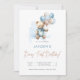 Cute Teddy Bear Beary First Birthday Blue Balloon Invitation