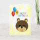 4th birthday card for a child who loves his teddy bear. a cute cartoon bear with birthday balloons.