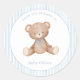 Cute Teddy Bear with blue and white pinstripe border personalized "from the nursery of" envelope seal. matching note card available.