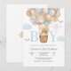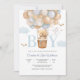 Celebrate your little one with this adorable baby shower invitation featuring a sweet teddy bear in a basket lifted by pastel balloons. The soft blue clouds and golden stars create a whimsical sky theme, perfect for welcoming a baby boy. This charming design is ideal for parents-to-be and makes a memorable keepsake for guests. Personalize with your event details and set the tone for a joyful celebration.