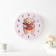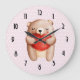Cute Teddy Bear Carrying a Red Heart on Polka Dots Large Clock