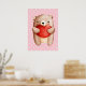 Poster with a cute watercolor illustration. A brown teddy bear carrying a big red heart.