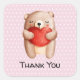Cute Teddy Bear Carrying a Red Heart Thank You Square Sticker