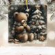 Enjoy this adorable ceramic ornament for yourself or for giving as a gift. This "Cute Teddy Bear Christmas" design sits near a small, decorated, snow covered Christmas tree with a gold star and baubles. He wears a plaid scarf, and in the dark black distance you can see snowflakes falling.