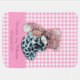 Cute pencil drawing of a teddy bear and duck pink, grey and white baby blanket. Would make a great baby shower gift, or newborn present. Personalize with your little baby's girls name and due date / birth date. Pencil art by Sarah Trett.