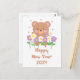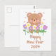 Cute Teddy Bear Flowers New Year Postcard