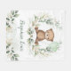 This adorable baby blanket features a cute teddy bear holding a heart-shaped balloon framed with gorgeous watercolor greenery wreath
