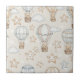 Soft neutral teddy bear pattern ceramic tile with hot air balloons and stars in warm beige tones. Calm, dreamy aesthetic with a gentle nursery feel. Ideal for baby boys, baby girls, new parents, and minimalist nursery lovers.