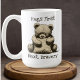 This sweet coffee cup is a lovely thing to look at first thing in the morning. This cute and vulnerable teddy bear is hugging a pillow and mentally preparing for the day. Hugs first. Next, bravery. You can easily change the wording on the mug to something more personal for you. Or add your name or a loved one's name and give this as a gift. I created this mug as a reminder to treat yourself with love and compassion. And a large amount of coffee or tea doesn't hurt either!