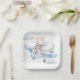 Sweet design with a watercolor bear flying in an airplane. This paper plate is perfect for children's birthday parties or baby showers.