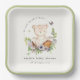 Cute Teddy Bear In Flower Basket Green Baby Shower Paper Plates