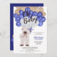 Cute teddy bear navy blue balloons boy baby shower invitation