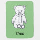 Cute outline drawing of a teddy bear, wearing a scarf, on a background of light green is printed on custom baby blankets. The design is printed on both sides. They are easy to personalize with a name using the templates, one for each side. The background color can be customized to any color of your selection. Thank you for shopping at CherylsArt on Zazzle.