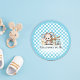 Adorable baby teddy bear and friends designed for your guests will fall in love with these guys. Bunny rabbit and elephant enjoy a picnic with bear, their basket and a milk bottle. Baby blue and white check pattern background. Template made for you, and perfect for all your honorees.
