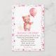 Cute teddy bear with balloon book request card in pastel pink and floral pattern. This card asks guests to bring in a new or used children's book instead of a card and you can easily customize the texts. Please check my shop Gulden Designs for more products of the collection.