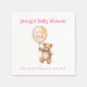 Celebrate your baby shower with this charming napkin design featuring an illustrated teddy bear holding a soft gold balloon. “[name] baby shower” is written in playful pink script at the top, while the event date appears on the balloon in matching font. The lower section features the heartfelt message, “We are so happy you are here,” in a minimal, modern type. Gentle blush, gold, and taupe tones blend with clean white for an uplifting, gender-neutral look. This napkin is perfect for baby showers, welcoming celebrations, or brunches, adding a sweet and welcoming touch to your table decor. The simple, uncluttered layout complements both traditional and contemporary themes.