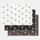 This comes with three sets of flat wrapping paper. The same image with three different backgrounds. The first is blue hearts and different (two) teddy bear on a white background. The second is the teddy bears and blue hearts on a black background and the last is the teddy bears and blue hearts on a brown background. The message on each image of the wrapping paper says: "It's a boy".