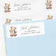 Make your baby boy shower invitations extra adorable with PixeliaCreations' Cute Teddy Bear with Blue Ribbon Return Address Labels. Featuring a charming watercolor teddy bear donning a sweet blue ribbon, these labels add a delightful touch to your envelopes. Measuring 2.25 x 0.75 inches in a rectangular shape, they fit perfectly on any invitation or envelope. Spread the joy of your upcoming arrival with our "We Can Bearly Wait" themed return address labels.