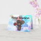 If you want to send a lovely message to that special someone then this cute kawaii valentines card is sure to win hearts. The design features a lovely tranquil blue background with a little adorable brown teddy bear that is extending an elegant bouquet of red flowers to convey its fuzzy feelings. You can use our template to customise the text and create a truly unique card, so do get romantic. We hope it makes your Valentines one to remember, kiss!
