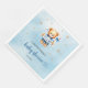 Unleash the charm of your boy baby shower party with the enchantingly designed napkins, graced with the illustration of an adorable baby bear. The bear, tenderly cradling blue and ivory balloons, descends from a sky blue canvas, evoking a sense of whimsical innocence. This charming 'Baby bear with balloons' napkin design perfectly captures the spirit of joyous celebrations, making it an unparalleled choice for creating an eternal memory of your special occasion.