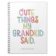 The perfect present for a new grandma or grandpa, gift this cute notebook for grandparents to record all the funny things their grandkid says. Send on Mother's Day or baby showers, this memorable notebook will record favorite sayings and memories to be cherish forever. Name is easily customized with different child names.