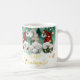A lovely Christmas Mug featuring three cute watercolor gnomes with red and grey hats, lovely Christmas trees forest background and yellow stars. A colorful and modern typography text with "Merry Christmas" in faux gold. Please, contact me for any help. Matching products are available. Wishing you lovely holidays.