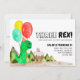 Cute THREE Rex Balloon Cake Dinosaur 3rd Birthday Invitation