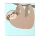 Cute cartoon image of a three-toed sloth, hanging on a branch. Customize the background colors, and personalize however you like!