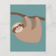 Cute cartoon image of a three-toed sloth, hanging on a branch. Customize the background colors, and personalize however you like!