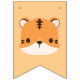 This design features cute tiger cartoon illustration with title "Happy Birthday" in brown modern sans serif font style on pastel orange background.