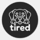 Cute tired dog design classic round sticker