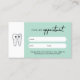 A cute tooth on a teal mint background color. A beautiful way to book your customers next appointment with this professional Dentist business logo appointment card. Next appointment card can be personalized to your text, QR code and business logo.