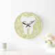 This fun clock features an adorable tooth, smiling on a green background of teeth, stars and swirls -- numbers can be easily removed -- click CUSTOMIZE to add your own text or logo!