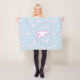 This fleece blanket pattern features cute Toy Poodle dogs that have been groomed and has heart-shaped paw prints. Pink and white on a light blue background. Great for kids and dog lovers.