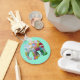 A cute design of a patchwork elephant in pastel rainbow colours against a light sky blue background. This animal is a whimsical, childlike, retro toy inspired design of a popular elephant Savannah African animal.