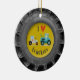 A lot of little kids are into tractors. This ornament has a big tractor tire with a yellow middle and two cute tractors on it, along with the words "I love tractors." On the back side, you can add the photo of the child. It's a cute gift for anyone who loves tractors.