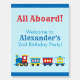 Welcome your guests to your train birthday party with this blue foam board featuring a cute train.