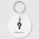 Musical keychain with a cute treble clef image on a white background. With black lettering, you can personalize with your own text. Great for adding an elegant musical touch to this cute gift item.